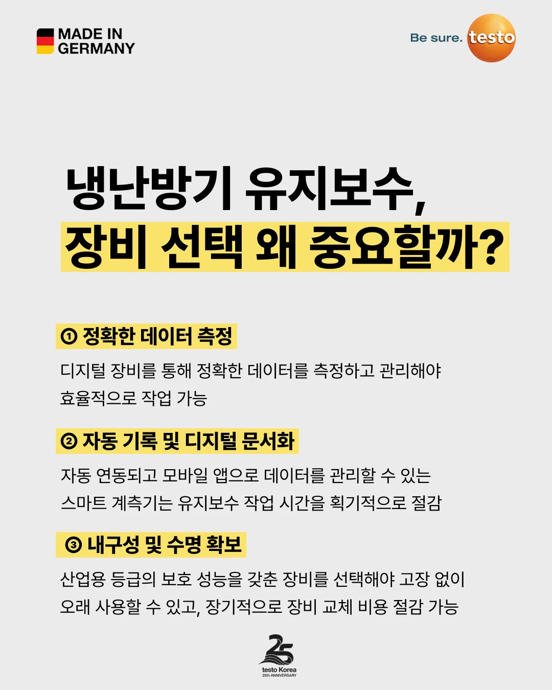 이번 글에서는 냉난방기 유지보수의 핵심 점검 단계와 각 단계에서 추천하는 테스토의 장비를 소개해 드리겠습니다.