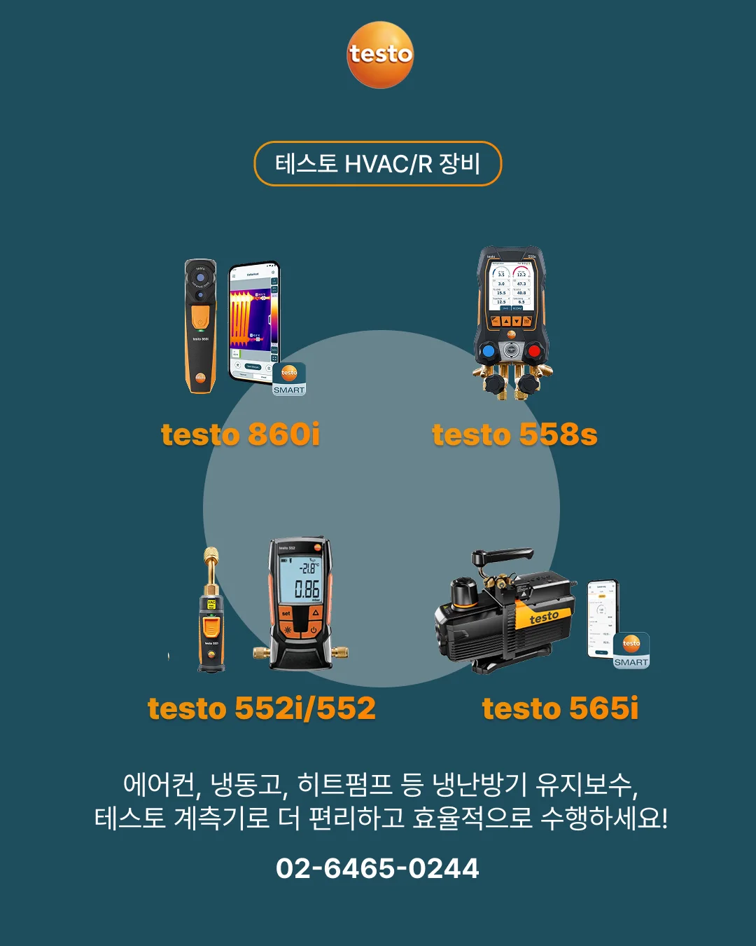 좀 더 구체적으로 에어컨 점검 및 냉난방기 유지보수 각 단계에서 활용 가능한 테스토 계측기의 특장점을 소개합니다.