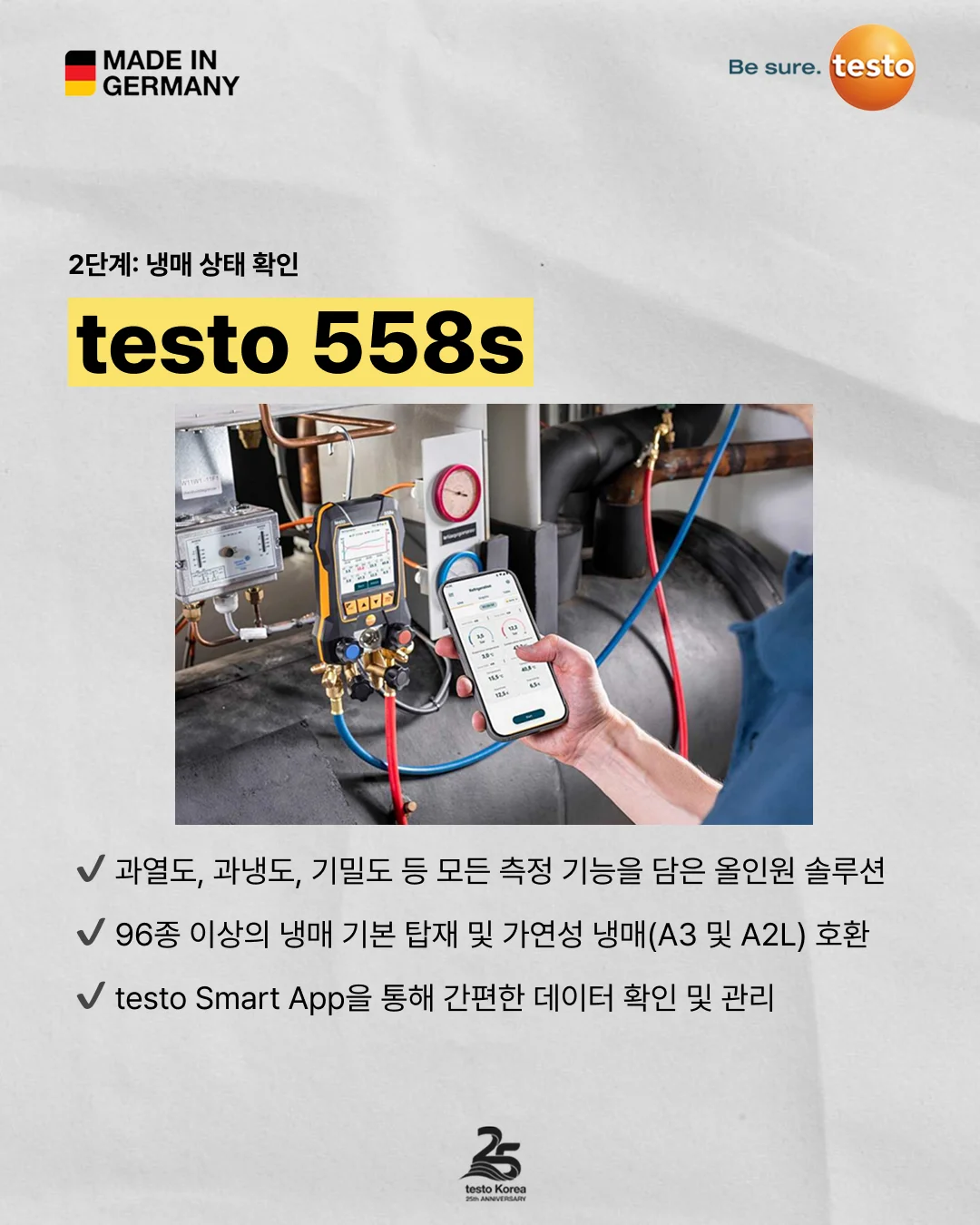 2단계 | 냉매 상태 확인 | 압력, 과열·과냉도 | testo 558s |