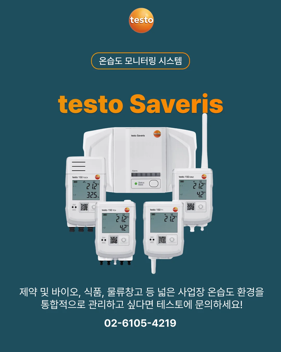 testo Saveris는 네트워크 지원 및 데이터 저장 방식에 따라 크게 세 가지 종류로 구분하며, 용도에 따라 제약 및 바이오 산업, 식품 산업 등에서 적용할 수 있어요.