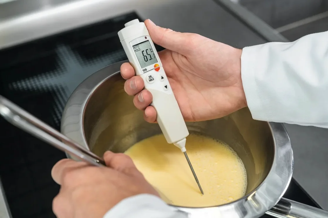 testo 106 | 빠른 반응 속도와 슬림 프로브로 식품 중심 온도를 빠르게 측정하는 침투형 온도계 | 프랜차이즈, 대형 급식소 등의 조리된 음식이나 식품 검수 현장 |